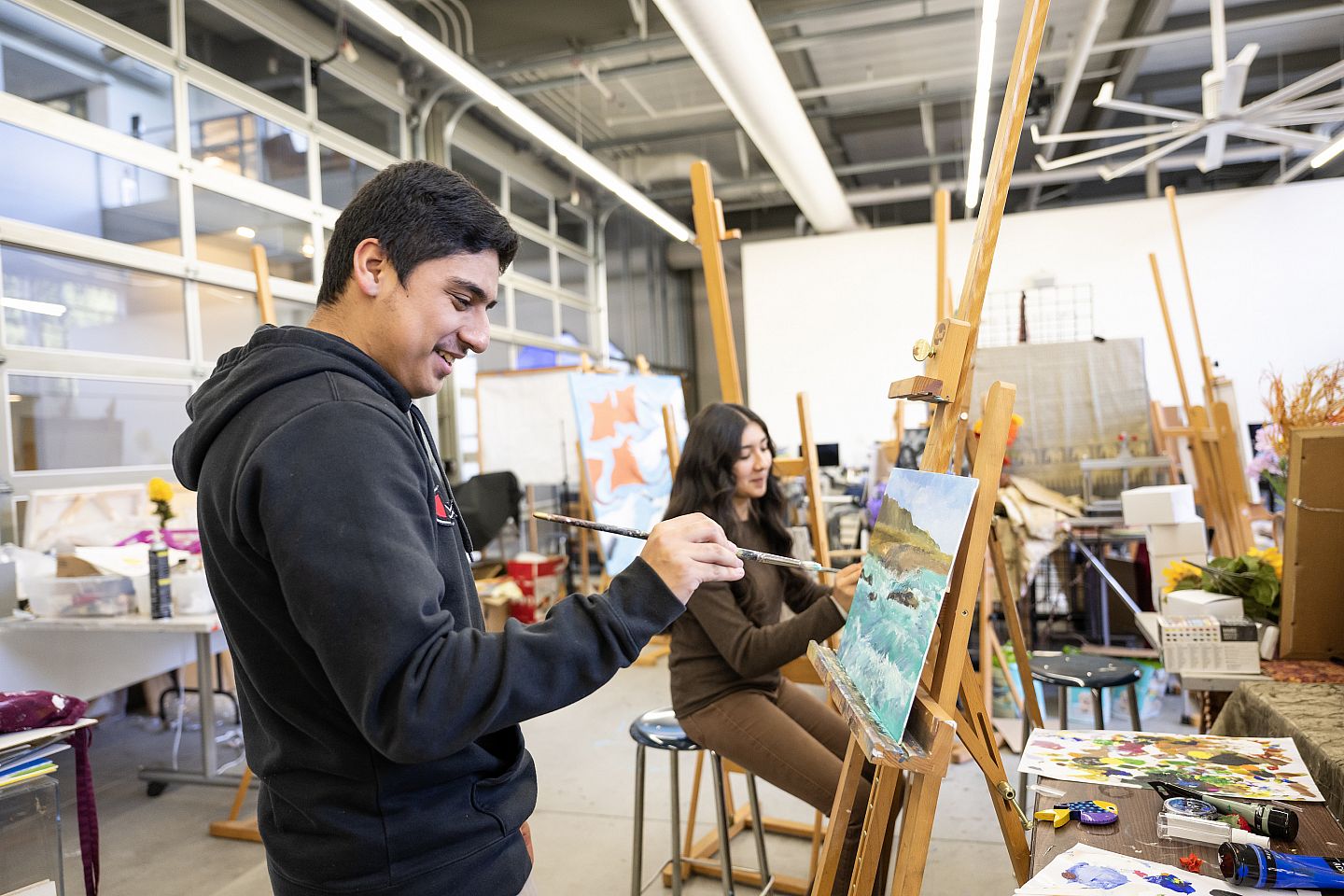 Students work on artwork in the Studio Art class.