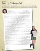 Each year, when Menlo welcomes its new ninth graders at the freshman retreat, students are asked to write letters to their senior selves. e letters, which include the students’ greatest hopes and fears about high school, are saved and opened and read during the senior retreat. As the Class of 2017 was preparing for commencement festivities, a few students volunteered to write letters to their freshmen selves, sharing some thoughts, in their own words, about what they wish they would have known as ninth graders.